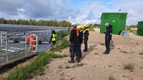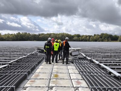 Sécurité aquatique en centrale photovoltaïque flottante. |